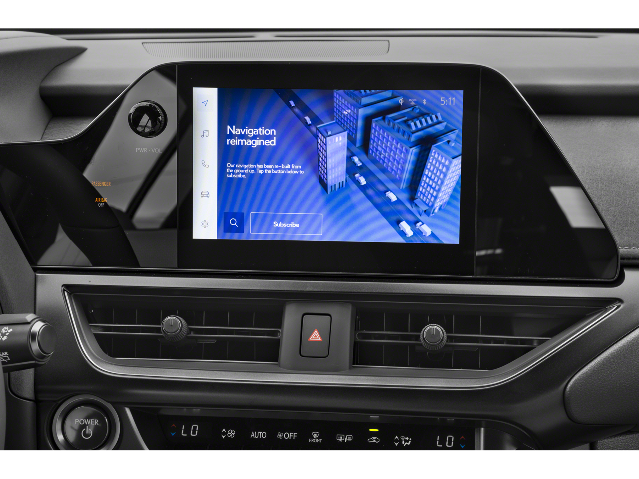 - Radio: Lexus Premium Sound System -inc: Lexus interface w/8" touchscreen display, Safety Connect, Service Connect, Remote Connect, Wi-Fi Connect w/AT&T hotspot and integrated streaming trials (paid subscription required after trial, 4G network dependent), Drive Connect capability w/cloud navigation, intelligent assistant (Hey Lexus), destination assist (available by subscription, 4G network dependent), wireless Apple CarPlay integration, wireless Android Auto compatibility, 6 speakers, Lexus app, Bluetooth® connectivity, USB ports and voice command
